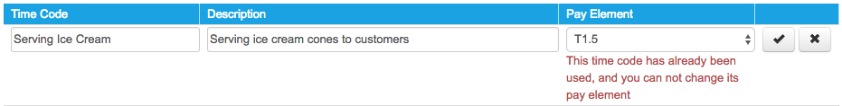 Note: You cannot change the pay element of a time code that has already been used by your people to log time.