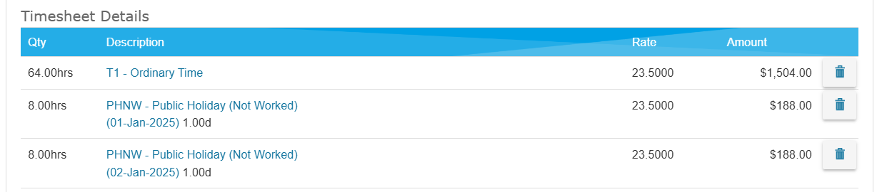 Timesheet Entry View - Automatic PHNW - Public Holiday (Not Worked)