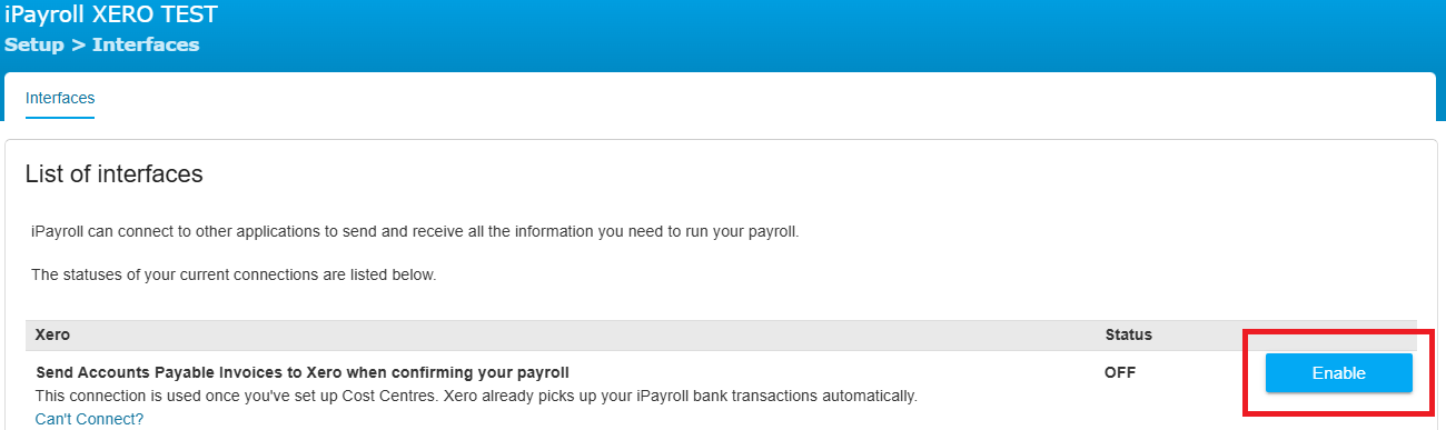 This article is for when you are experiencing issues with the iPayroll to Xero Interface. If you have tried to connect iPayroll to Xero and you are still not able to post invoices, you may need to disconnect the connection in Xero Accounting in order for the interface connection to work.