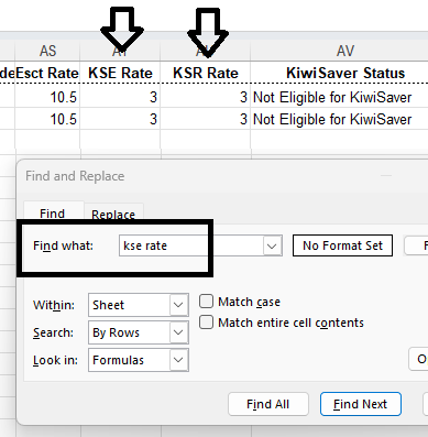 4. Then, click on Ctlr F to find the KSE Rate column. You should see the KSE Rate and KSR Rate columns.